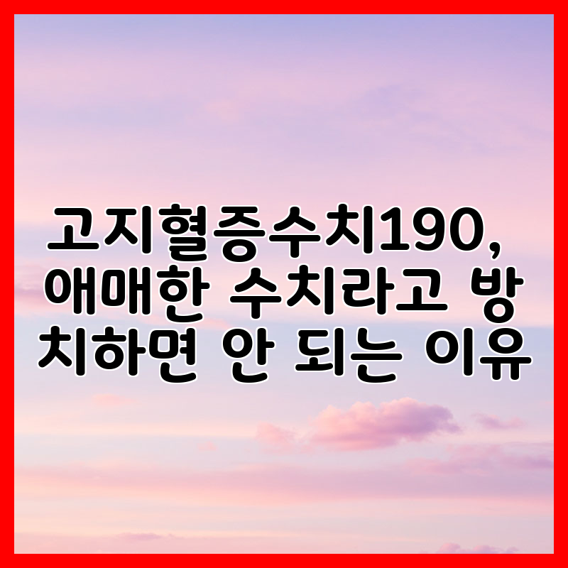 고지혈증수치190, 애매한 수치라고 방치하면 안 되는 이유에 대해 이야기해볼게요. 수치 하나만 보면 '그냥 좀 높은가 보다' 하고 넘기기 쉽지만, 실제로는 짧게 보면 별일 없어 보여도 시간이 흐르면 심혈관 질환으로 이어질 가능성이 커집니다. 이 글에서는 왜 190이 특별한지, 당장 병원에서 무엇을 확인하고 어떻게 생활·약물로 대응해야 하는지, 그리고 현실적으로 적용할 수 있는 실전 팁을 중심으로 쉽게 정리할게요.
