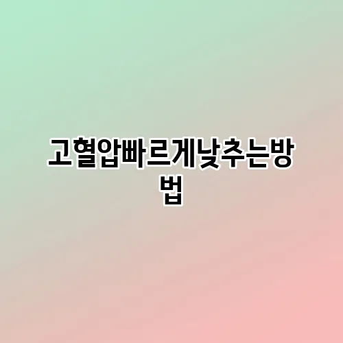 갑자기 혈압이 급상승했을 때 빠르게 낮추는 방법은 무엇인가요?