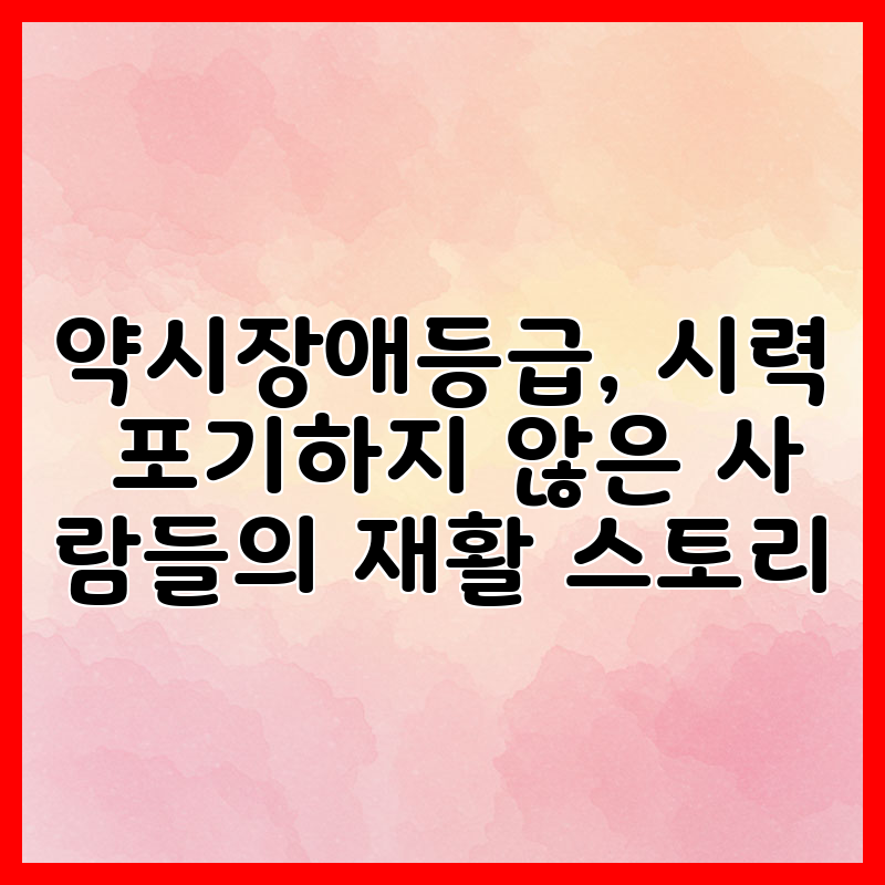약시장애등급, 시력 포기하지 않은 사람들의 재활 스토리라는 제목을 보면 흔히 떠오르는 건 '행정적 분류'와 '개인의 고난'일 거예요. 이 글에서는 단순한 제도 설명을 넘어 실제로 시력을 잃거나 저하된 뒤에도 삶을 다시 꾸려가는 사람들의 구체적인 재활 과정과 팁, 현장에서 느낀 현실적인 조언을 나눌게요. 제도나 등급은 도구일 뿐이고, 중요한 건 그 도구를 어떻게 활용해 일상과 일을 되찾는가입니다. 그래서 저는 제도적 정보, 초기 대처법, 보조기기 활용법, 직장 복귀 전략, 그리고 실제 사례까지 실무 중심으로 풀어보려 합니다.